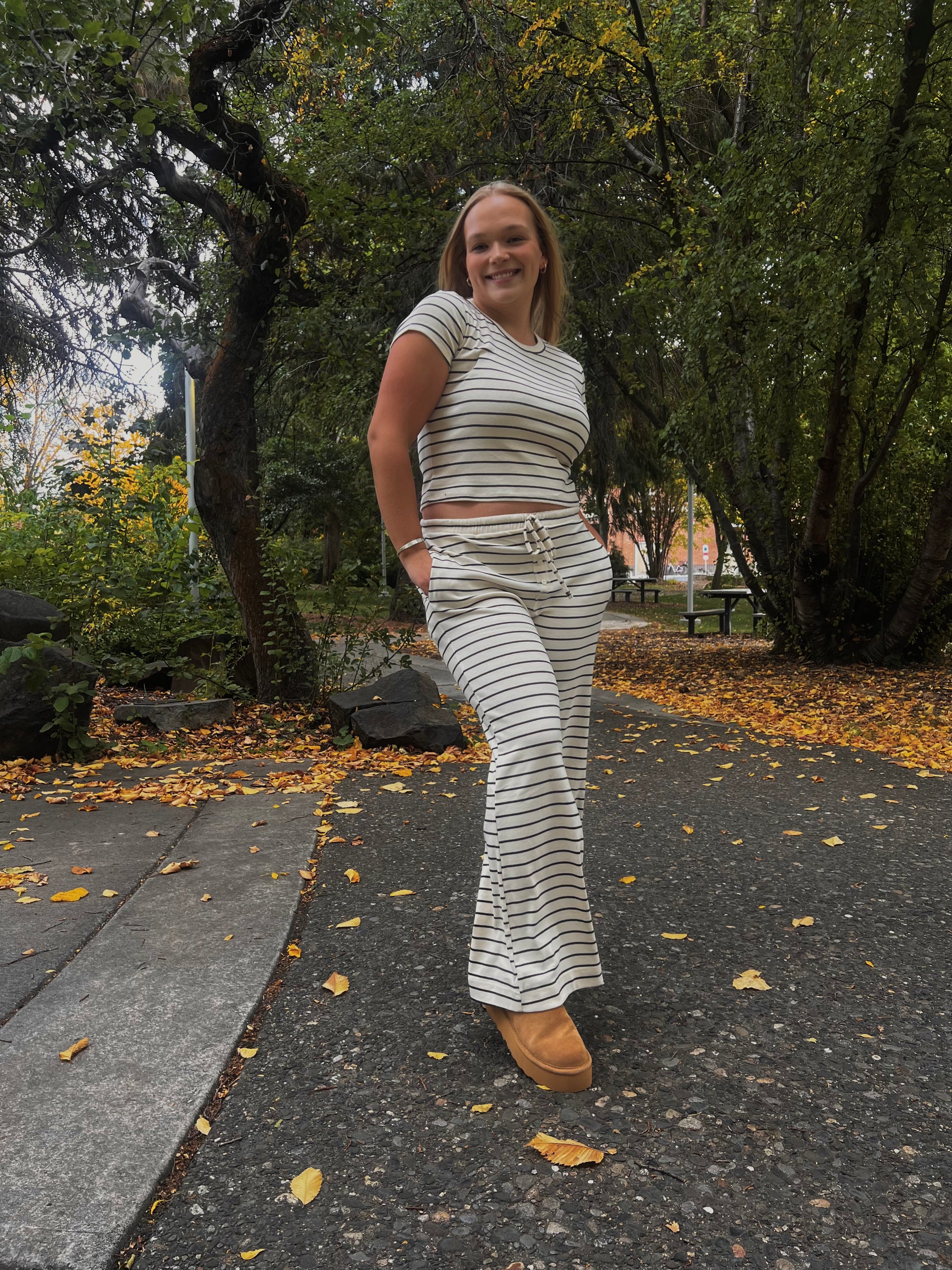 Some days I want to look put together, but don't want to put on "real" clothes... That's where lounge wear comes in! This set is perfect for days like those! I love how cute, and chic it is, without sacrificing comfort! I can see myself lounging in this all fall y'all!!